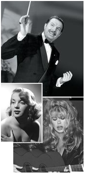 Charo is probably more familiar to most of us these days, from her many appearances on Johnny Carson’s Tonight Show and her famous “coochie, coochie” and other comedic routines. She always made it part of her act to mangle the English language too, but was – and still is – fluent in several languages, in addition to being a fine guitarist. Abbe Lane was a talented entertainer who also made some appearances with Johnny Carson, but probably with a little less flamboyance.