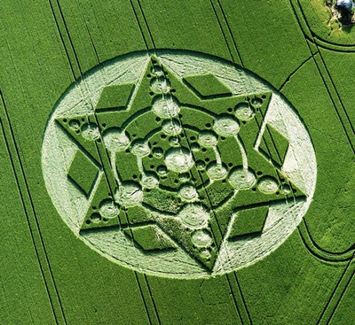 I was a little curious about crop circles because the subject came up in a book I’m reading. So I ‘googled’ it and found that — not surprisingly — cyberspace is full of pictures of amazing vegetative designs, along with websites dedicated to the subject.
