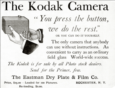 George Eastman is generally considered to be the father of modern photography with his Kodak camera, which allowed the average person to take pictures, rather than a professional. His camera was filled with film and once you had used them up you sent the whole thing in. They’d develop your pictures, refill it with fresh film, and send the whole kit and kaboodle back to you. Not bad but with obvious drawbacks, paving the way for a simple but revolutionary step that occurred in 1900.